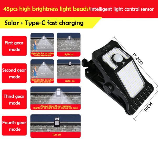 Esta luz solar con clip y sensor de movimiento es perfecta para iluminar tus espacios exteriores de forma eficiente y sencilla. Gracias a su diseño único, se puede instalar fácilmente en lugares como terrazas, cercas, garajes, vidrios de casa, casetas, gallineros, entradas, patios y puertas principales. Solo utiliza tu imaginación para colocarla donde necesites.