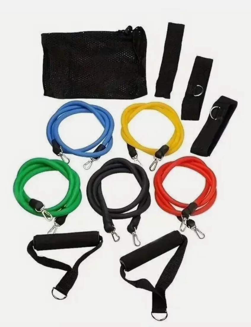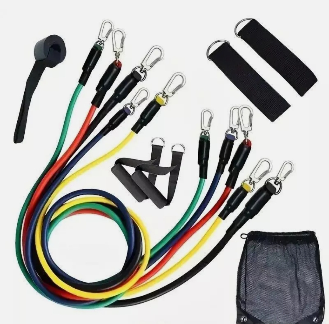 Lleva tu entrenamiento al siguiente nivel, en casa o donde quieras, con nuestro completo Set Profesional de 11 Bandas de Resistencia. Ideal para fitness, yoga, pilates, rehabilitación y entrenamiento de fuerza, este kit te ofrece una versatilidad inigualable para trabajar cada grupo muscular.