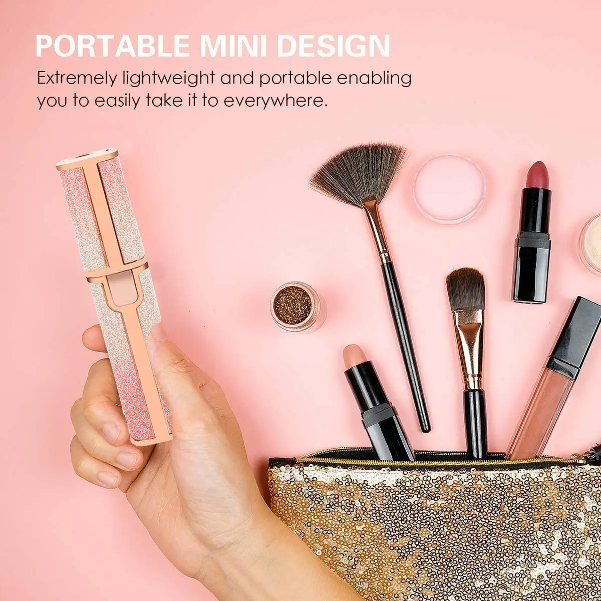 - Diseño Elegante y Portátil: Con un cuerpo de ABS y un acabado atractivo (como el que se muestra en la imagen), es compacto y discreto, fácil de guardar en tu bolso o neceser.